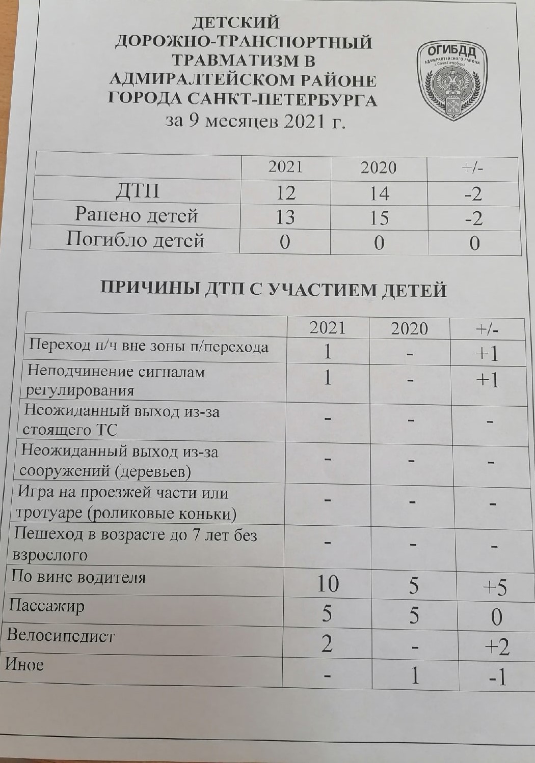 Информация ГИБДД за 2020-2021 учебный год.