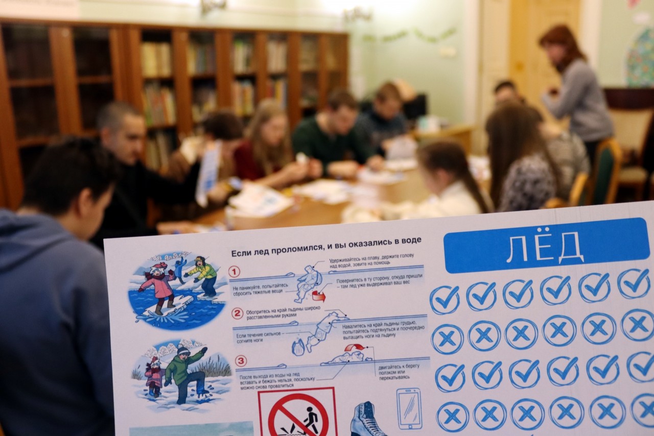 На новой встрече в библиотеке ребята прослушали книгу «Опасные приключения Веры и Саши. Уровень: лёд», обсудили, как одеться для зимней прогулки, что взять с собой, как вести себя у замёрзшего водоёма и что делать, если провалились под лёд.